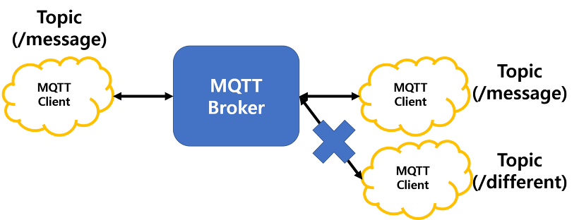 Broker(서버)에 같은 Topic으로 연결된 Client들에게 메세지를 보낸다. Publisher는 Topic과 메세지를 보내는데, 같은 Topic으로 연결된 Subcribe들에게 모두 메세지를 보낸다.