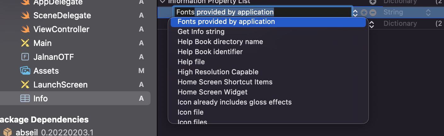 Info파일에 폰트를 적용하겠다는 것을 적어줍니다.