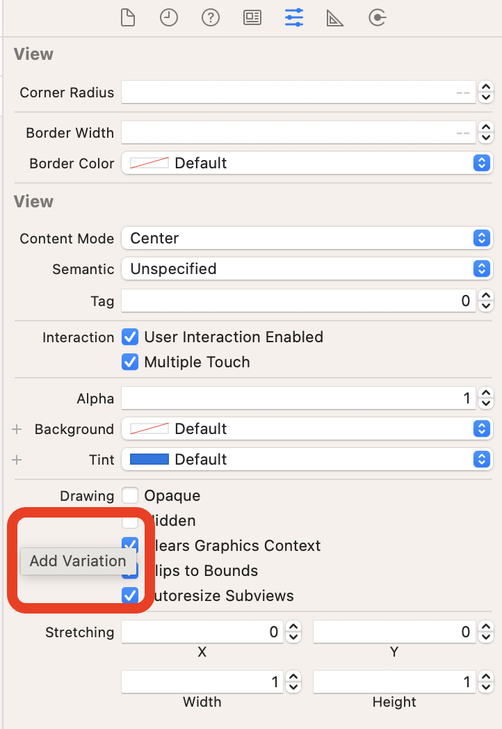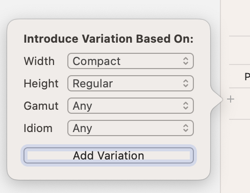 Xcode 13이전에는 vary for traits라고 해서 따로 생성해야 했는데, 13이후에는 각 요소마다 따로 추가할 수 있게 바뀌었다.