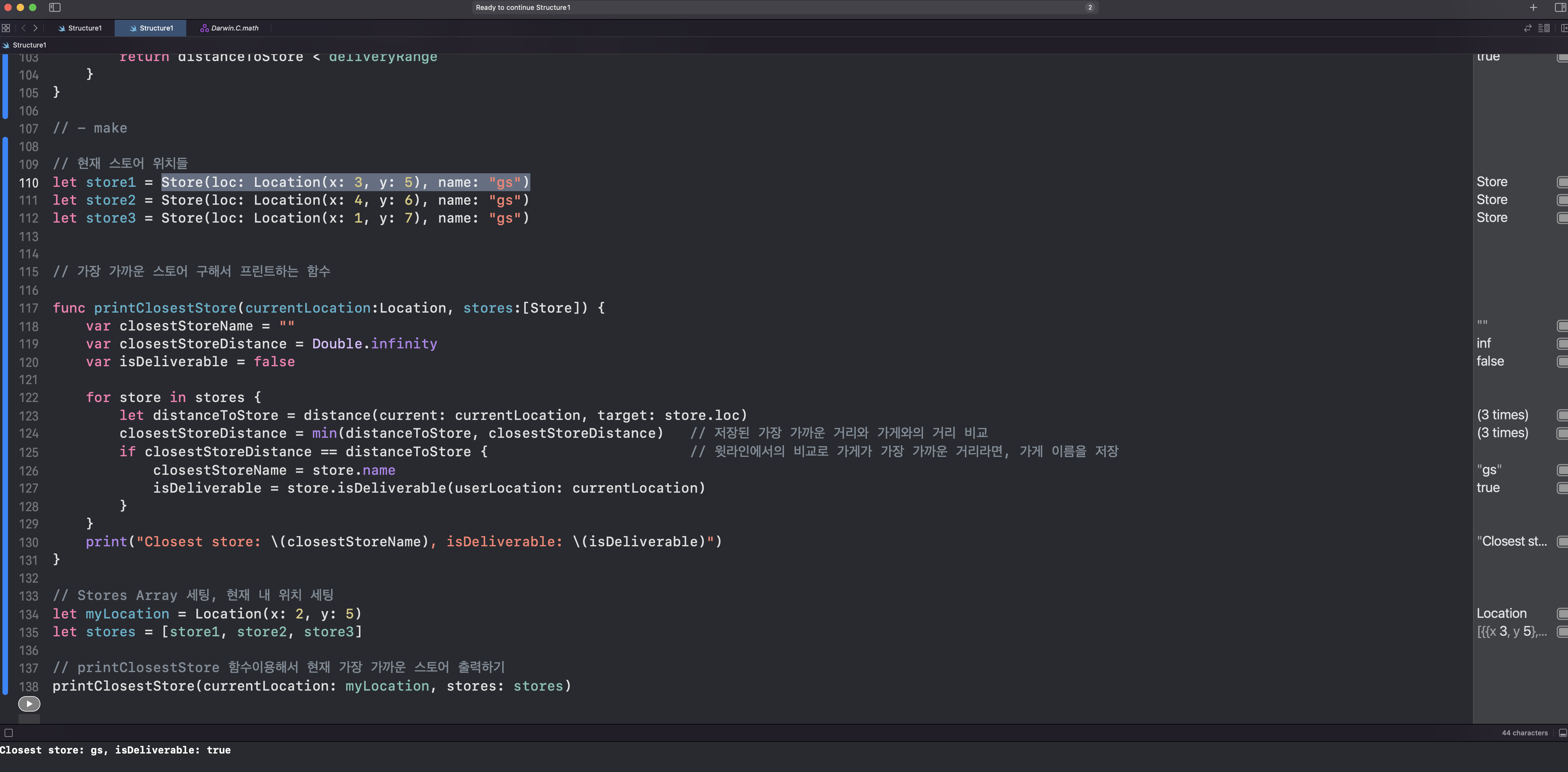 let store1 = Store(loc: Location(x: 3, y: 5), name: "gs")//4