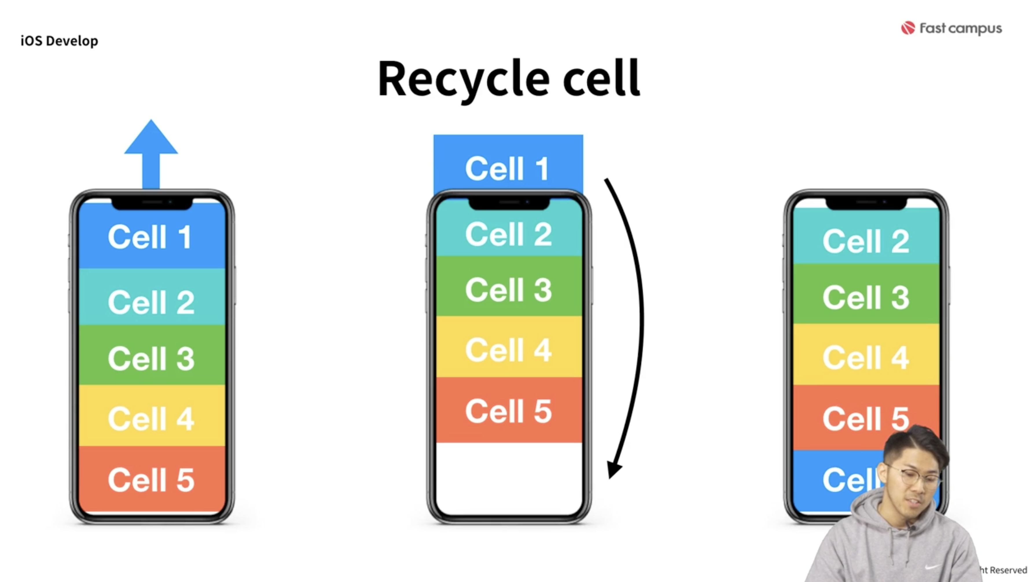 그림으로 표현하면 이렇게 됩니다. 셀1은 안보이게 되면서 새로운 데이터를 보여주게 재사용됩니다.
