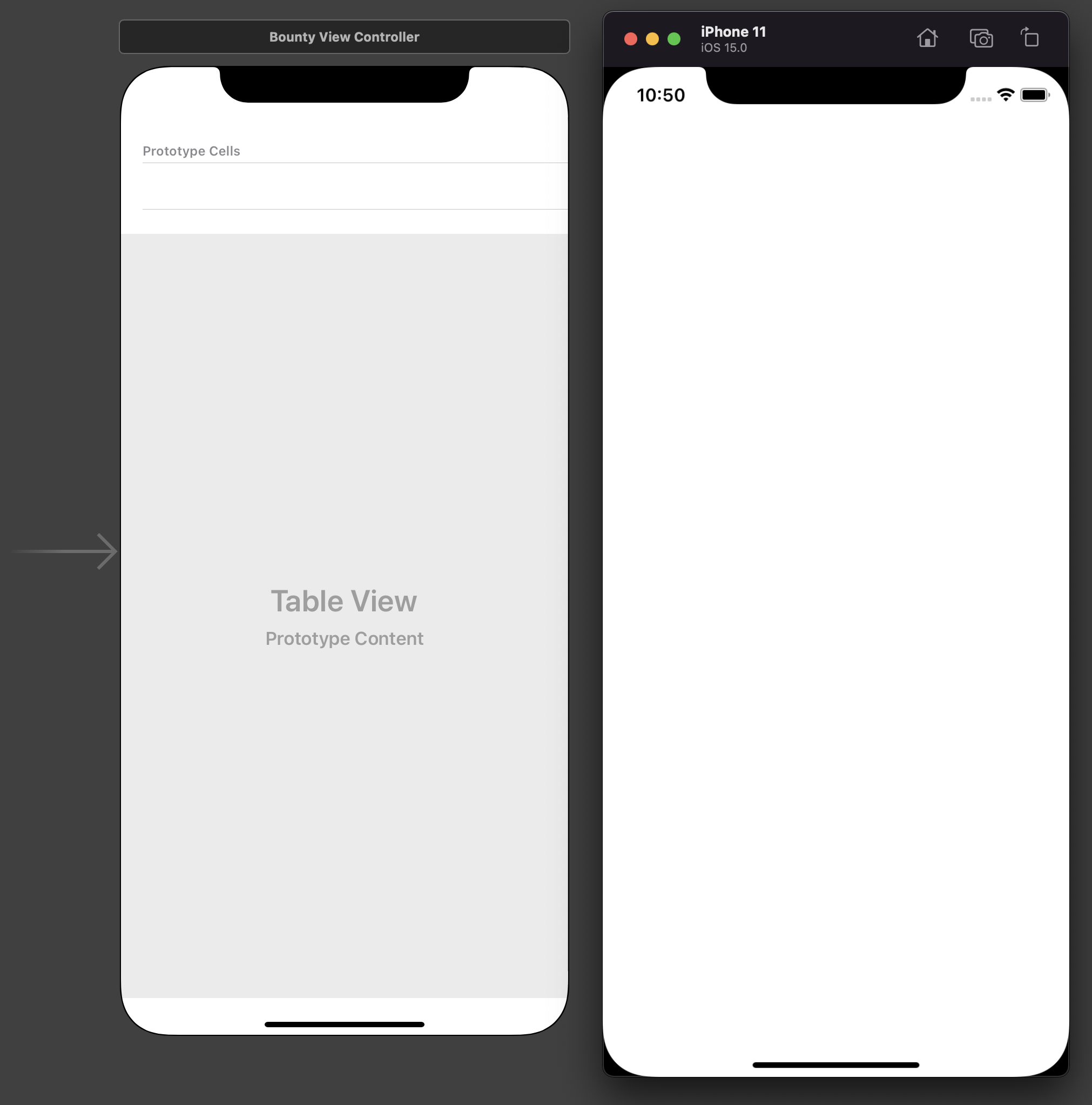스토리보드상에는 테이블뷰가 보이지만 실제로는 아무것도 안보입니다.