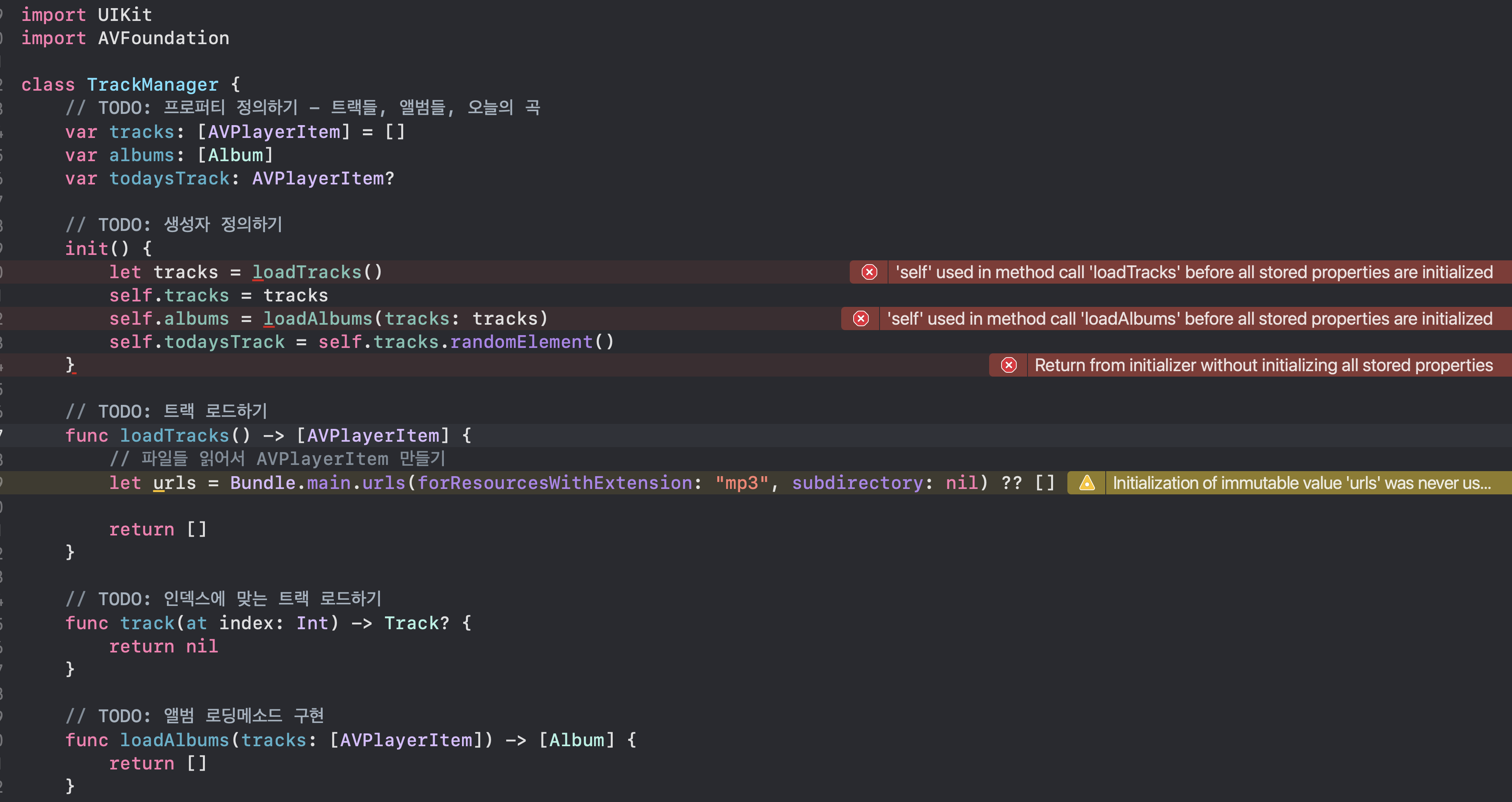 게다가 자세히 보니까 self.todaysTrack은 오류가 나지 않았습니다.