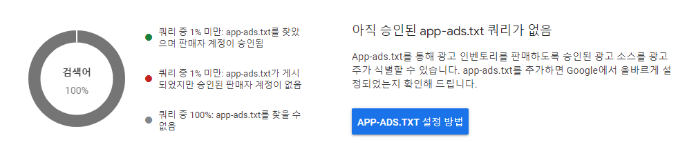 바로 app-ads.txt 설정 방법 버튼이 안보이는 오류입니다.